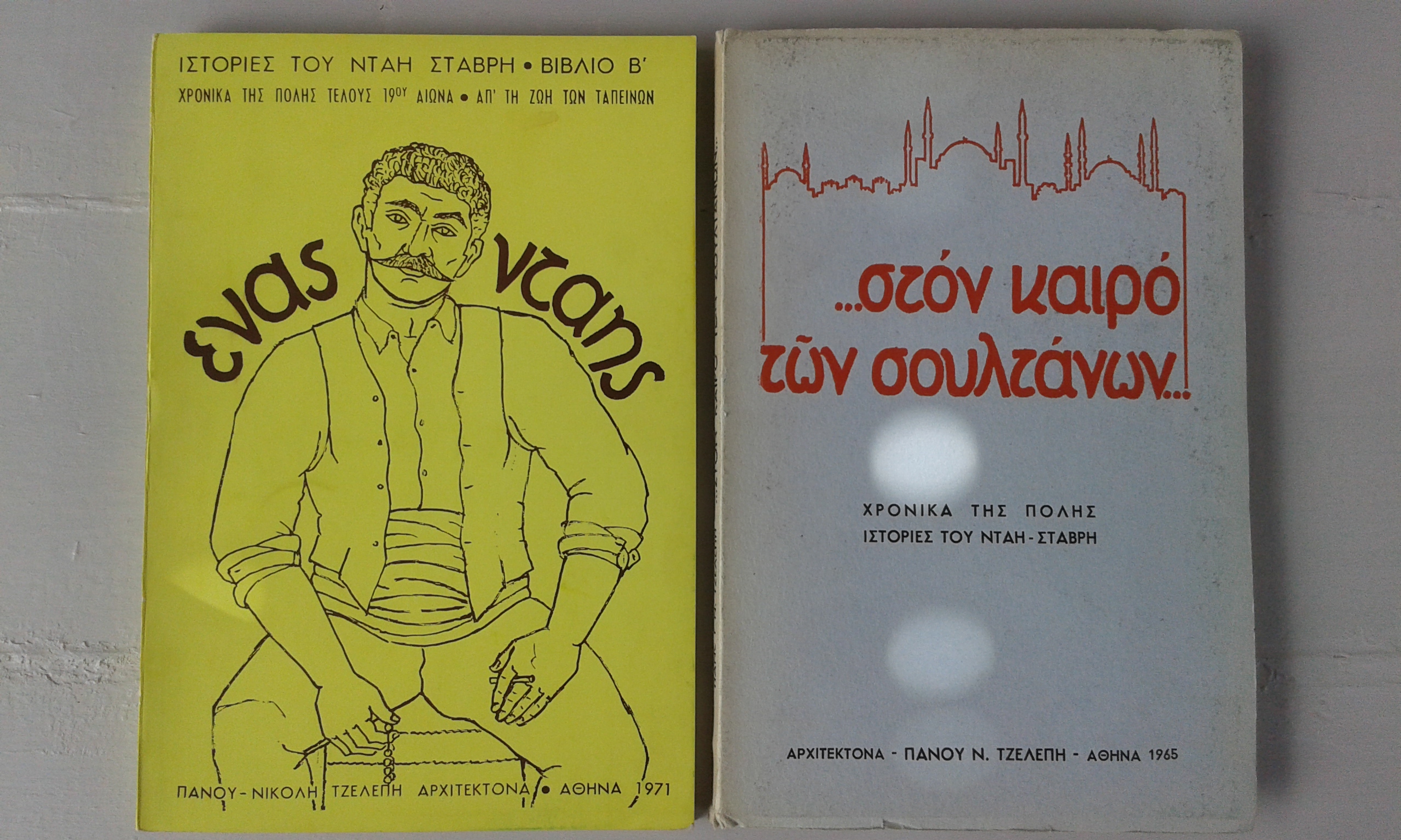 Πάνος Νικολής Τζελέπης, …στον καιρό των σουλτάνων… Χρονικά της Πόλης, Ιστορίες του Νταή Σταβρή, 1965 | Ένας Νταής, Ιστορίες του Νταή Σταβρή Βιβλίο Β’ Χρονικά της Πόλης του τέλους του 19ου αιώνα, Απ’ την ζωή των Ταπεινών, 1971 | επανέκδοση: εκδόσεις Τροχαλία, 2003 – εξαντλημένα | Βιβλία