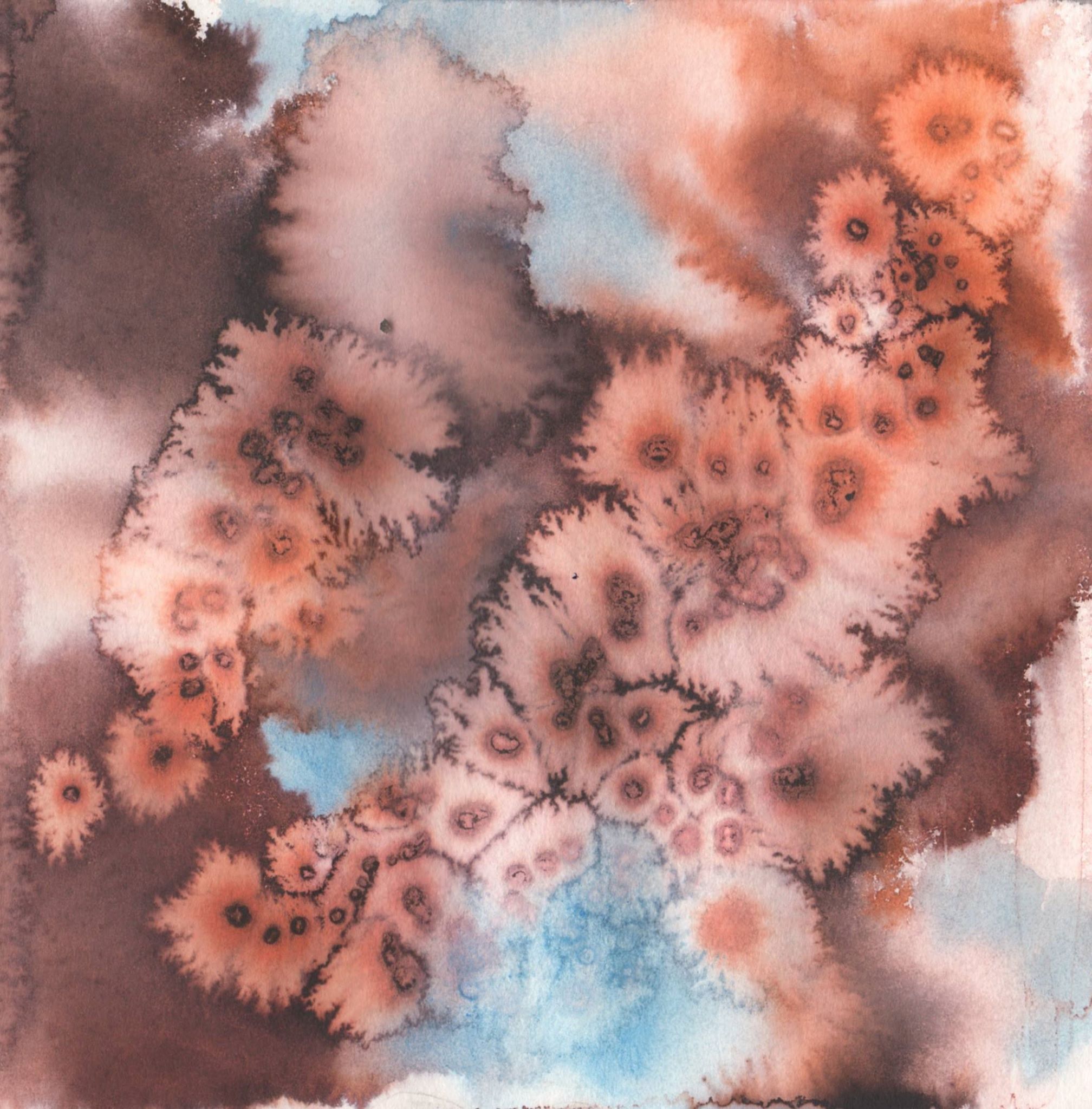 Μέσω της αλληλεπίδρασης των υλικών που χρησιμοποιεί, χαρτί μπαμπού, νερό, ακρυλικά και μελάνι, δημιουργεί πολλαπλές επιφάνειες χρώματος. Σε αυτές τις αφηρημένες συνθέσεις, που μπορούν να ιδωθούν ως αποτυπώσεις της ωκεάνιας κοχλάζουσας ενέργειας του σύμπαντος, κυριαρχεί το χρώμα.