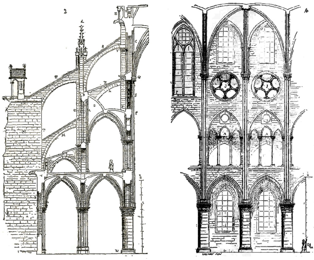 Αντί να αποκαταστήσουν τη ζημιά που προέκυψε στην Notre-Dame του Παρισιού, το εκμεταλλεύτηκαν για να αφαιρέσουντους ρόδακες πάνω από το υπερώο (…) Αφαίρεσαν την υδρορροή D, κατεδάφισαν τις αντηρίδες H I με διπλό ύψος, κατέβασαν την υδρορροή D στο επίπεδο R, χαμήλωσαν τα τρίγωνα S των θόλων, έκαναν μια επικλινή πλακόστρωση πάνω από τους θόλους».[7]