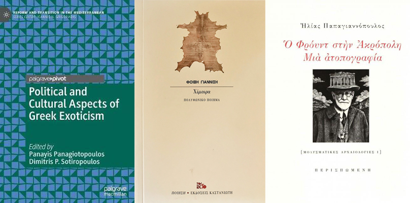 Ιδού μερικές από τις σκέψεις που μου προκάλεσαν φέτος κάποιες εξαίρετες εκδόσεις, μικτού είδους. Σημειώνω τους τίτλους τους με τη σειρά που τις διέσχισα: Panayis Panagiotopoulos, Dimitris Sotiropoulos (επιμέλεια) Political and Cultural Aspects of Greek Exoticism, εκδ. Palgrave Macmillan, London 2019· ΦοίβηΓιαννίση, Χίμαιρα, Πολυφωνικό ποίημα, εκδ. Καστανιώτης 2019· Ηλίας Παπαγιαννόπουλος, Ο Φρόυντ στην Ακρόπολη. Μια ατοπογραφία. [Μολυσματικές Αρχαιολογίες Ι], εκδ. Περισπωμένη 2019. (Σχέδιο του Δημήτρη Αναστασίου από τον κολοφώνα της έκδοσης). Θα προσέθετα εδώ ορισμένες σελίδες του περιοδικού Ιστορία της Τέχνης που διευθύνει ο Νίκος Δασκαλοθανάσης (εκδόσεις Futura). Έπεται συνέχεια.