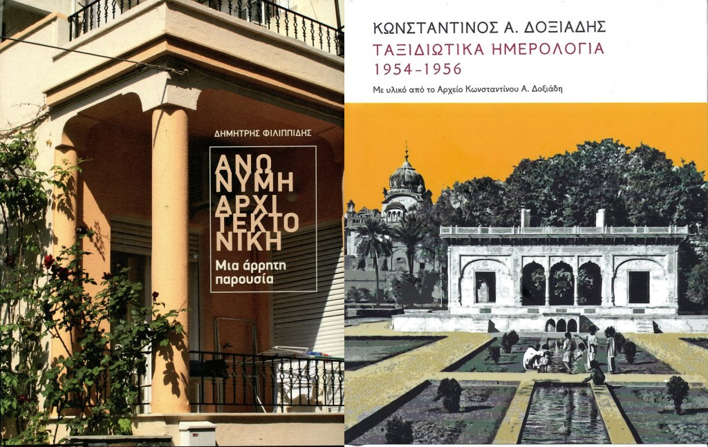 3. Βιβλία: Δύο βιβλία του πολυγραφότατου Δημήτρη Φιλιππίδη προστέθηκαν και φέτος στην βιβλιογραφία για την αρχιτεκτονική. ΑΝΩΝΥΜΗ ΑΡΧΙΤΕΚΤΟΝΙΚΗ-Μια άρρητη παρουσία. Μια έκδοση (Πολιτιστικό Ίδρυμα Ομίλου Πειραιώς) που εδραιώνει μια τολμηρή αλλά πραγματικά εύστοχη και συγκροτημένη θεωρητική άποψη για την Ανώνυμη Αρχιτεκτονική που εδώ και χρόνια αναδεικνύει και τεκμηριώνει ο Δημήτρης Φιλιππίδης. Παράλληλα ο Φιλιππίδης επιμελήθηκε και τα Ταξιδιωτικά Ημερολόγια 1954 – 1956 του Κωνσταντίνου Α. Δοξιάδη, από τον Εκδοτικό Οίκο Μέλισσα.