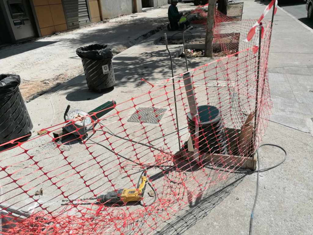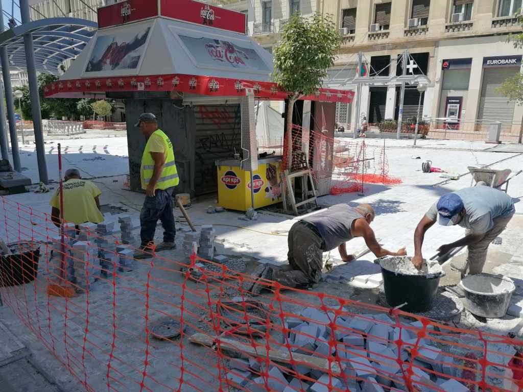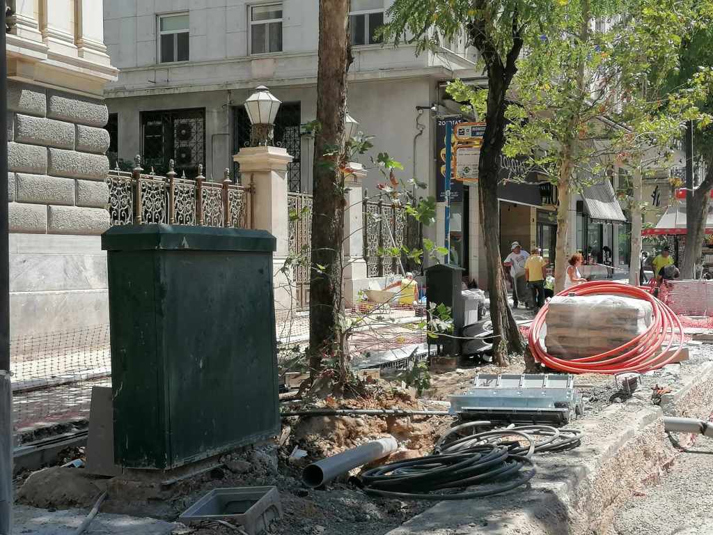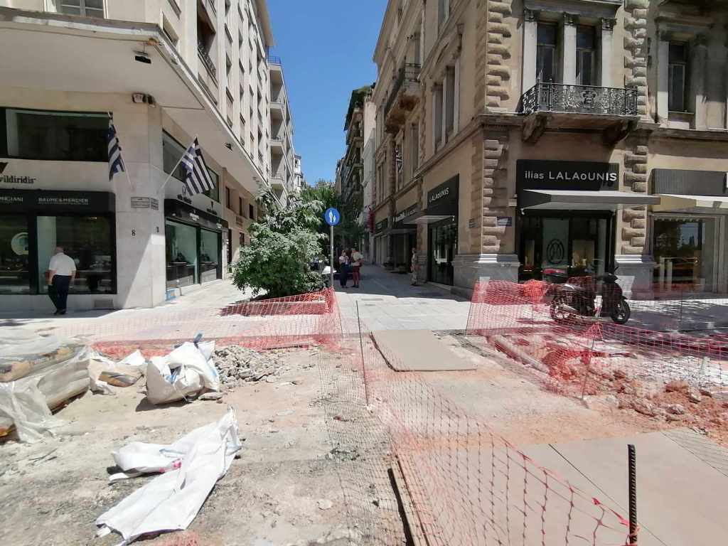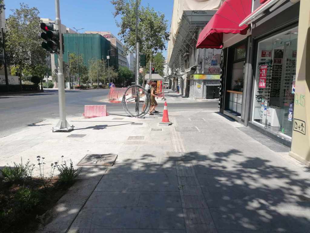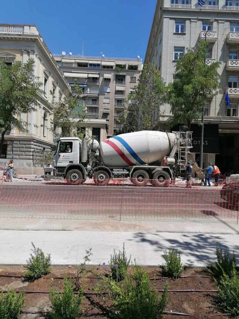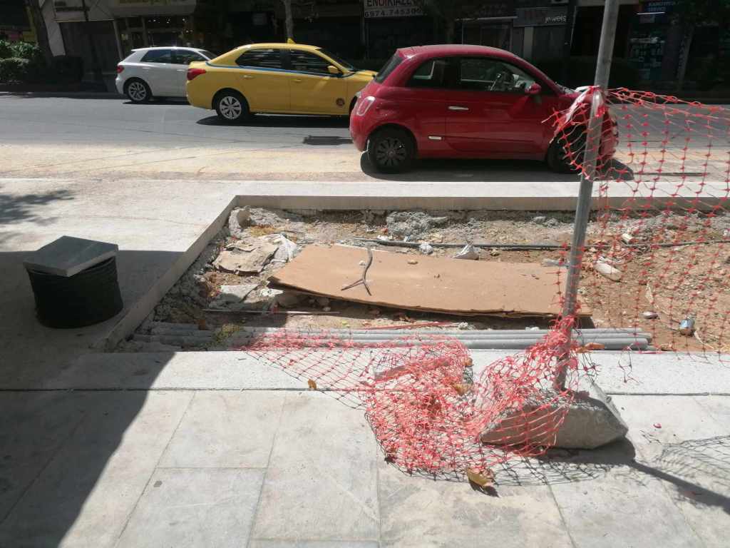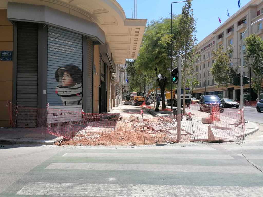 Τεράστια οπτική και ηχητική όχληση, καμιά σωστή κατασκευαστική λεπτομέρεια, απουσία προδιαγραφών υλικών, κάκιστος αστικός εξοπλισμός. Για να μην πω για τα εργοτάξια τα ίδια. Μόνο ντροπή σου προκαλούν. Κανένα μέτρο ασφαλείας ούτε για τους εργαζόμενους, ούτε για τους κατοίκους, ούτε για τους τουρίστες. Ορθάνοιχτα εργοτάξια, τυλιγμένα κατά τόπους (σε σημεία ξεχαρβαλωμένα) με πορτοκαλί πλέγματα περίφραξης, κοκκινόλευκες ταινίες σήμανσης εμποδίων ή κώνους, όπου, αλλού σκαρφαλώνεις για να προσεγγίσεις την στάση του λεωφορείου, αλλού πατάς σε κάτι ξύλινες γεφυρούλες της πλάκας ή κάτι μπαταρισμένες λαμαρίνες, αλλού βλέπεις διάσπαρτα νέα υλικά δαπεδόστρωσης, τρύπες που έχουν απλά μπαλωθεί, επικίνδυνα περάσματα, κάτι σωληνώσεις-σκοτώστρες, κάτι καλώδια και μπαλαντέζες να διασχίζουν τον δρόμο, πέντε – έξι εργάτες να παλεύουν με τις κόλλες πλακιδίων και τα τσιμέντα και να σκάβουν εν μέσω καύσωνα χωρίς καν κράνος ή γάντια. Να φοβάσαι μην σου έρθει τίποτα στο κεφάλι ή μην χαθεί η γη κάτω από τα πόδια σου. Βομβαρδισμένα τοπία. Δεν ξέρω μήπως και έχουν γίνει εργατικά ατυχήματα. Είναι πολύ πιθανό. Σίγουρα θα έχουν μπουρδουκλωθεί πολλοί περαστικοί. Δεν μπορεί. Από τύχη την έχω γλιτώσει εγώ. Ποιος άραγε λογοδοτεί για την διαχείριση αυτού του τεχνικού έργου; Πώς έχουν διασφαλιστεί τα απαιτούμενα μέτρα ασφάλειας και υγιεινής; Υπάρχει οργανόγραμμα; Όσο πλησιάζει κανείς προς την Ομόνοια εντωμεταξύ, το πρόβλημα οξύνεται. Εκπλήσσεται κανείς;