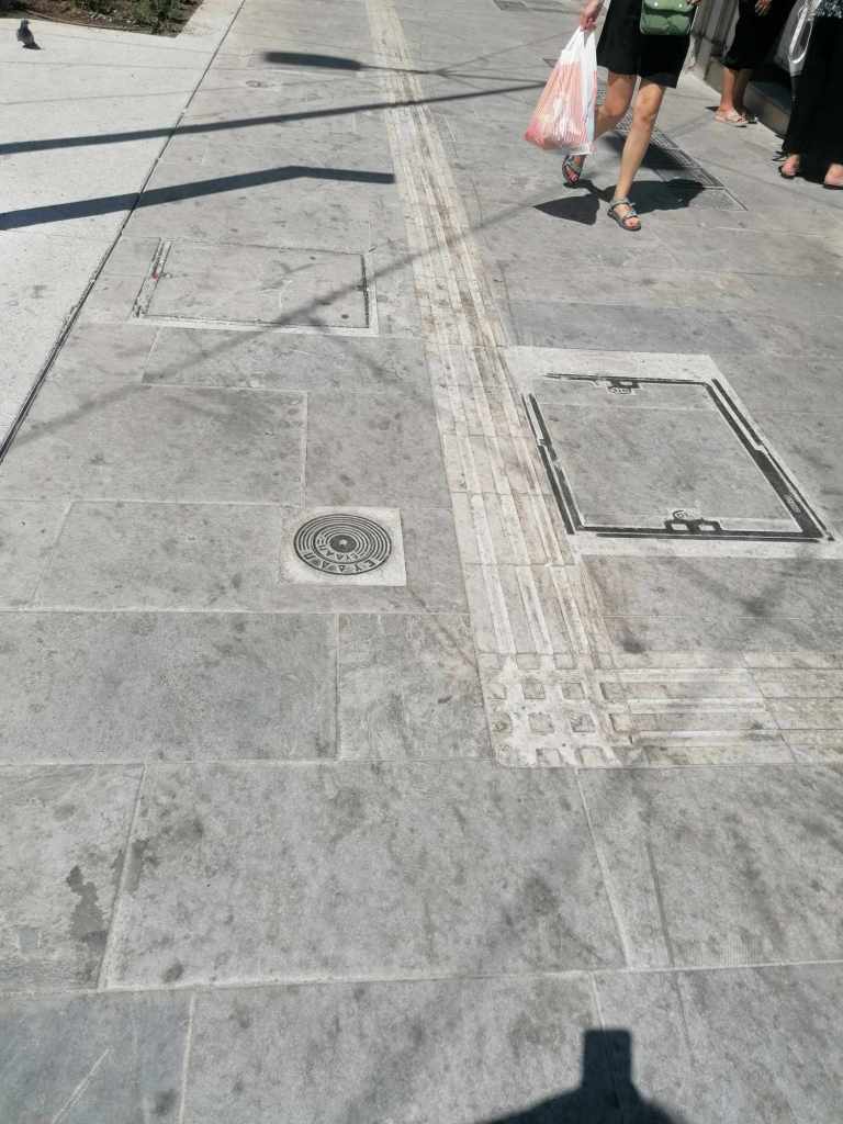 Έχει ασχοληθεί κανένας με όλα αυτά στον σημερινό «Μεγάλο Περίπατο»; Εννοείται πως όχι. Ποιον ενδιαφέρει πώς φαίνεται η Τριλογία από απέναντι; Αν θα παρεμβαίνουν οπτικά εμπόδια ή όχι; Έχουν σημασία οι χαράξεις; Σιγά. Πέρα δώθε κάτι σχάρες και πού και πού κάτι αρμοί που γίνονται αυτοσχεδιαστικά. Ούτε καν πρόβλεψη σε υποδομές και δίκτυα παρά μόνο διατήρησή τους σε άκυρες θέσεις: σχάρες, αποχετεύσεις, κολωνάκια, στύλοι, ΚΑΦΑΟ. Και θα πει κανείς: μα αυτά δεν είναι στην δικαιοδοσία του Δήμου. Πράγματι. Αλλά όταν θέλουμε χρησιμοποιούμε την έννοια του κατεπείγοντως και όλα μπαίνουν σε ένα περίεργο καθεστώς «κατάστασης εξαίρεσης», και όταν δεν θέλουμε απλά βρίσκουμε δικαιολογίες για να αποποιηθούμε ευθύνες. Προφανώς και θα έπρεπε να περάσουν στην αρμοδιότητα του Δήμου, γενικά αλλά και ειδικά όταν πρόκειται για έργα τέτοιας κλίμακας. (Είναι πολύ απλό. Σαν να ανακαινίζεις το μπάνιο ενός διαμερίσματος και απλά να αλλάζεις τα πλακάκια, αφήνοντας τις υδραυλικές εγκαταστάσεις, τις σωληνώσεις, τα σιφώνια, τα σχαράκια, τα πάντα, εκεί που ήταν. Είναι αυτό ανακαίνιση;)