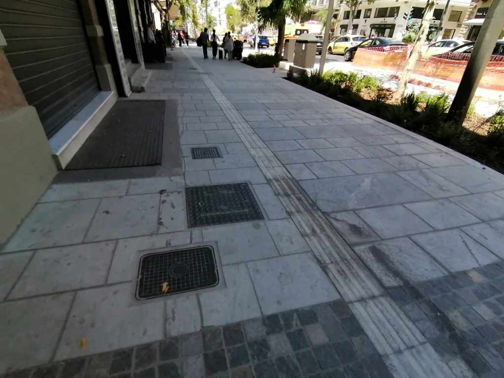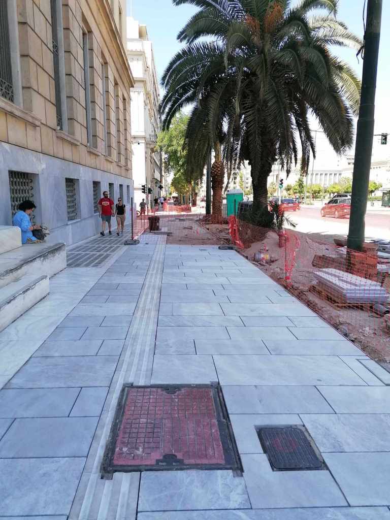 Σε επίπεδο αισθητικής, κατασκευής, λειτουργικότητας & προσβασιμότητας για όλους; H αισθητική απλά έχει πάει ακόμα μεγαλύτερο περίπατο. Το γεγονός ότι έχουν χρησιμοποιηθεί υπόλευκες, λευκές και γκρίζες αποχρώσεις στις πλακοστρώσεις θεωρούμε ότι είναι από μόνο του κατάκτηση. «Τουλάχιστον δεν θα είναι σαν τα χιαστί πράσινα καγκελάκια-σήμα κατατεθέν του Αβραμόπουλου» ακούμε από συναδέλφους αρχιτέκτονες με τρόμο στα μάτια (γιατί έχουμε δει και εμείς πολλά) και αυτό μας κάνει να ανεχόμαστε το χάλι. Θα θυμάστε λοιπόν ότι πριν 10 χρόνια, το 2013 είχε προκηρυχθεί διεθνής αρχιτεκτονικός διαγωνισμός για την ανάπλαση της Πανεπιστημίου με τίτλο «Rethink Athens» με αγωνοθέτη και χρηματοδότη των μελετών του έργου έναν ιδιώτη – το Ίδρυμα Ωνάση- χωρίς βέβαια να αναλαμβάνει και το κόστος υλοποίησης του έργου. Το 2014 όμως ήρθε η Ευρωπαϊκή Επιτροπή να απαντήσει στην τότε κυβέρνηση (Σαμαρά) απαιτώντας την απένταξη του έργου από το τότε «ΕΣΠΑ» γιατί «δεν είναι δυνατό να χρηματοδοτούνται «διακοσμητικά έργα», σε περίοδο έλλειψης πόρων και ενώ εκκρεμεί η ολοκλήρωση των διευρωπαϊκών δικτύων της χώρας, αλλά και άλλων έργων προτεραιότητας». Λογικό. Υπήρχαν πολλές ενστάσεις από πολύ κόσμο τότε –και δική μου βεβαίως- για την χρησιμότητα ενός τέτοιου έργου «βιτρίνας» σε περίοδο κρίσης αλλά και για την εμπλοκή ενός ιδιωτικού ιδρύματος σε τέτοιας κλίμακας πολεοδομική παρέμβαση στην πρωτεύουσα. Αλλά αυτό είναι μια άλλη ιστορία.